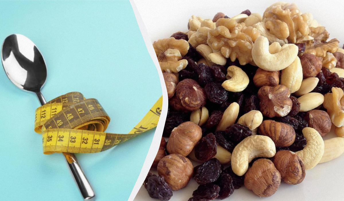 En blanding af nødder og tørret frugt er et af de produkter, der skal indtages med forsigtighed, når man taber sig / collage My, foto depositphotos.com, pxhere.com