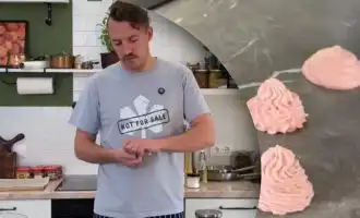 - Pisk æg og sukker med en røremaskine til en klumpet masse.